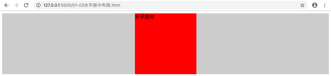 <body> <div class="parent"> <div class="child">水平居中</div> </div> </body> </html>