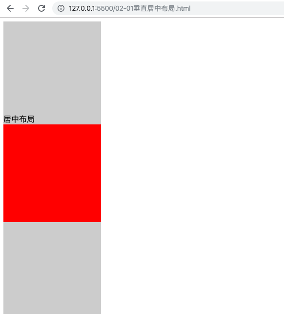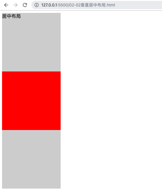 .child { width: 200px; height: 200px; background-color: #f00; } </style> <body> <div class="parent"> 居中布局 <div class="child"></div> </div> </body> </html>