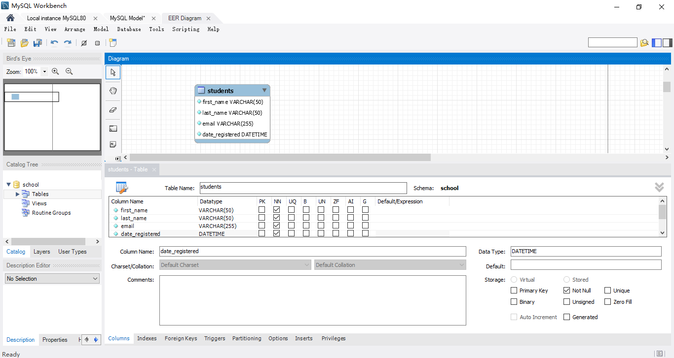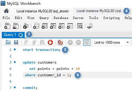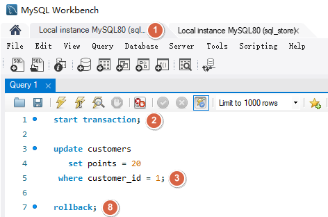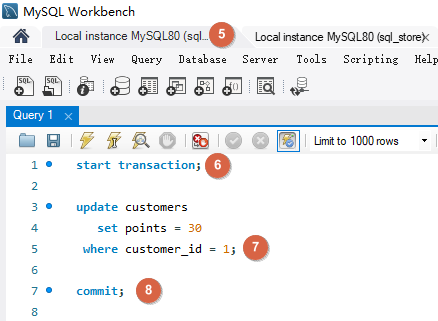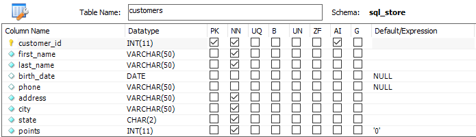 1 2 3 4 5 6 insert into customersvalues (default , 'babb' , 'chen' , default , default , '18896763538' , 'henan' , 'xy' , default );update customers set points = default where customer_id = 1 ;