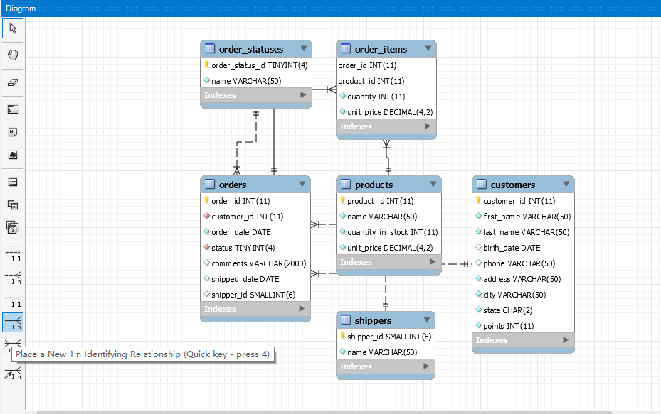 notes: Identifying relationships exist when the primary key of the parent entity is included in the primary key of the child entity. On the other hand, a non-identifying relationship exists when the primary key of the parent entity is included in the child entity but not as part of the child entity’s primary key.