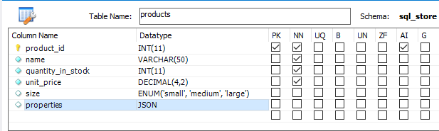 1 2 3 4 5 6 update products set properties = json_object ( 'weight' , 10 , 'dimensions' , json_array (1 , 2 , 3 ), 'manufactor' , json_object ('name' , 'sony' ) ) where product_id = 1 ;