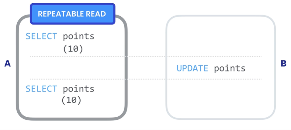 不可重复读就是在事务过程中读取了某个数据两次,得到了不同结果。解决此问题需要为事务建立隔离级别 REPEATABLE READ, 将它与其他事务隔离,确保数据更改对事务不可见,读取的数据是可重复和一致的,即使其它事务更改了数据,我们会看到首次读取就创建的快照。