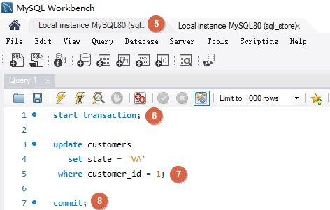 Workbench 菜单 Query -> Excute Current Statement (Ctrl + Enter) 执行 1, 2, 关闭连接,重新连接查询 orders 数据没有被插入。