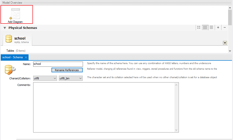 MySQL Workbench 可以生成数据表的 Entity RelationShip Digram. Menu Path: Database -> Reverse Engineer -> 选择相关 Database 生成 Model Digram.