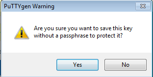 - In the PuTTYgen Warning dialog box, click Yes.