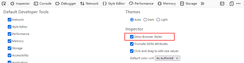 在 Inspector 设置中勾选 Show Browser Styles.