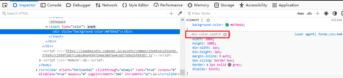 默认 color input 在浏览器中的显示如下: