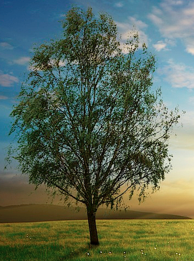 A graphic’s alpha channel forms a bump map that responds to light. Transparent values remain flat, while opaque values rise to form peaks that are illuminated more prominently. To illustrate how lighting works, this example generates a hilly terrain: