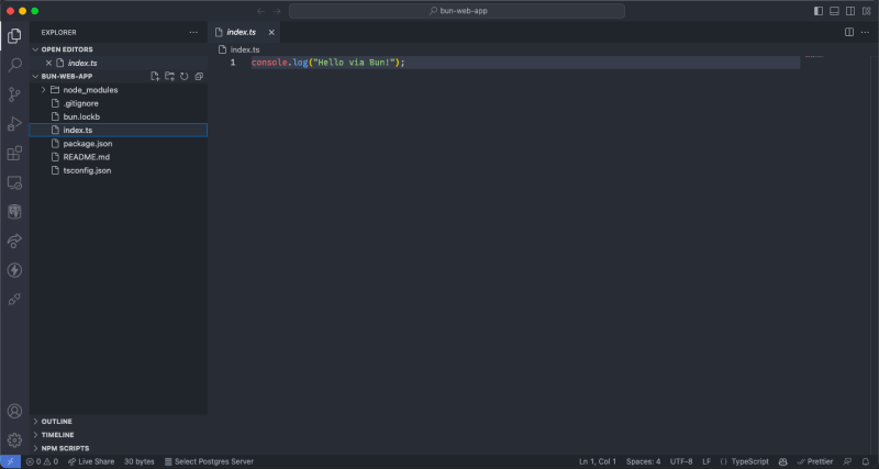 The cool thing about this is it has built-in TypeScript support, Yes you no longer need tsc, Moreover you can write packages in Typescript and publish it to the NPM Registry as-is, Though your package will then be limited to Bun users.