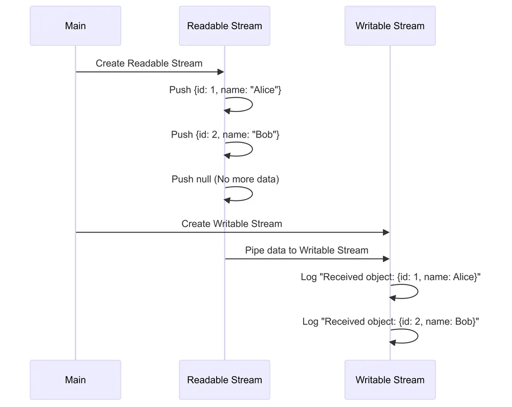 - Data flows automatically, with backpressure handled by Node.js.